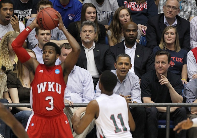 Americký prezident Barack Obama vzal britského premiéra Davida Camerona na zápas univerzitních týmů v košíkové. Obama předvedl Cameronovi svůj oblíbený sport v Daytonu ve státě Ohio, kde se střetly týmy Western Kentucky a Mississippi Valley State.
