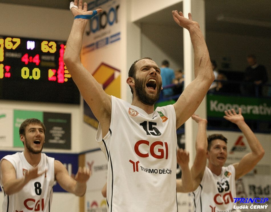 SUMMARY ZÁPASU 3 SEMIFINÁLE NBL VČETNĚ OHLASŮ Halou otřásala bouře nevole a přes pískot v ní nebylo vůbec nic slyšet. Hřiště právě opouštěl domácí hrdina Jakub Houška. Ač strašně nechtěl. Po srážce s Orlem Mrvišem mu ale zapískali pátý faul a tři minuty do konce vše záviselo na zbývajícím dlouhém Landovi a čtyřech menších kolezích, neboť power forward Jelínek zůstal v zápase téměř nevyužit. Válečníci se právě nadechovali k závěrečné zteči a ztráta kapitána, který svými útočnými doskoky ve čtvrté čtvrtině režíroval nebývalý comeback z 43-56, se zdála být už fatální. A za další minutu bylo ještě hůř, když Orel Švrdlík, který v bitvě trefil dvě trojky, ale v závěru minul 4 kritické trestné hody, 1:52 do konce posunul hosty na 58-63. V ten moment, za semifinálového stavu 1-1, se začalo historické děčínské finále už povážlivě vzdalovat...